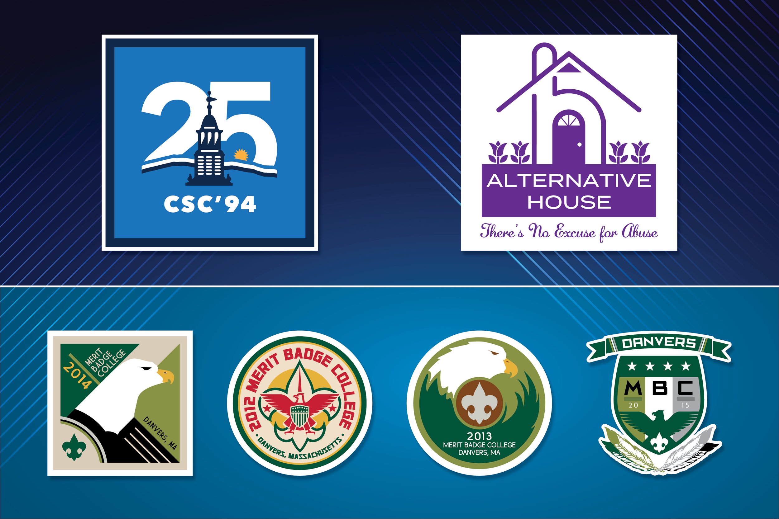Event logos created for website promotion and patches awarded to participating scouts. Created for Danvers Troop 58’s Merit Badge College.