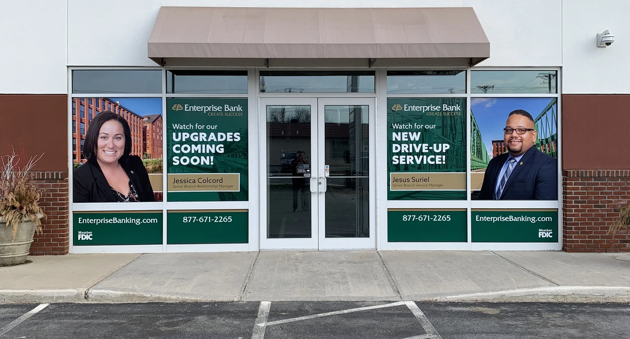 Design window clings for the Lawrence branch renovation that promoted local bankers and highlighted the addition of a new drive-thru service, all while maintaining a strong local presence.